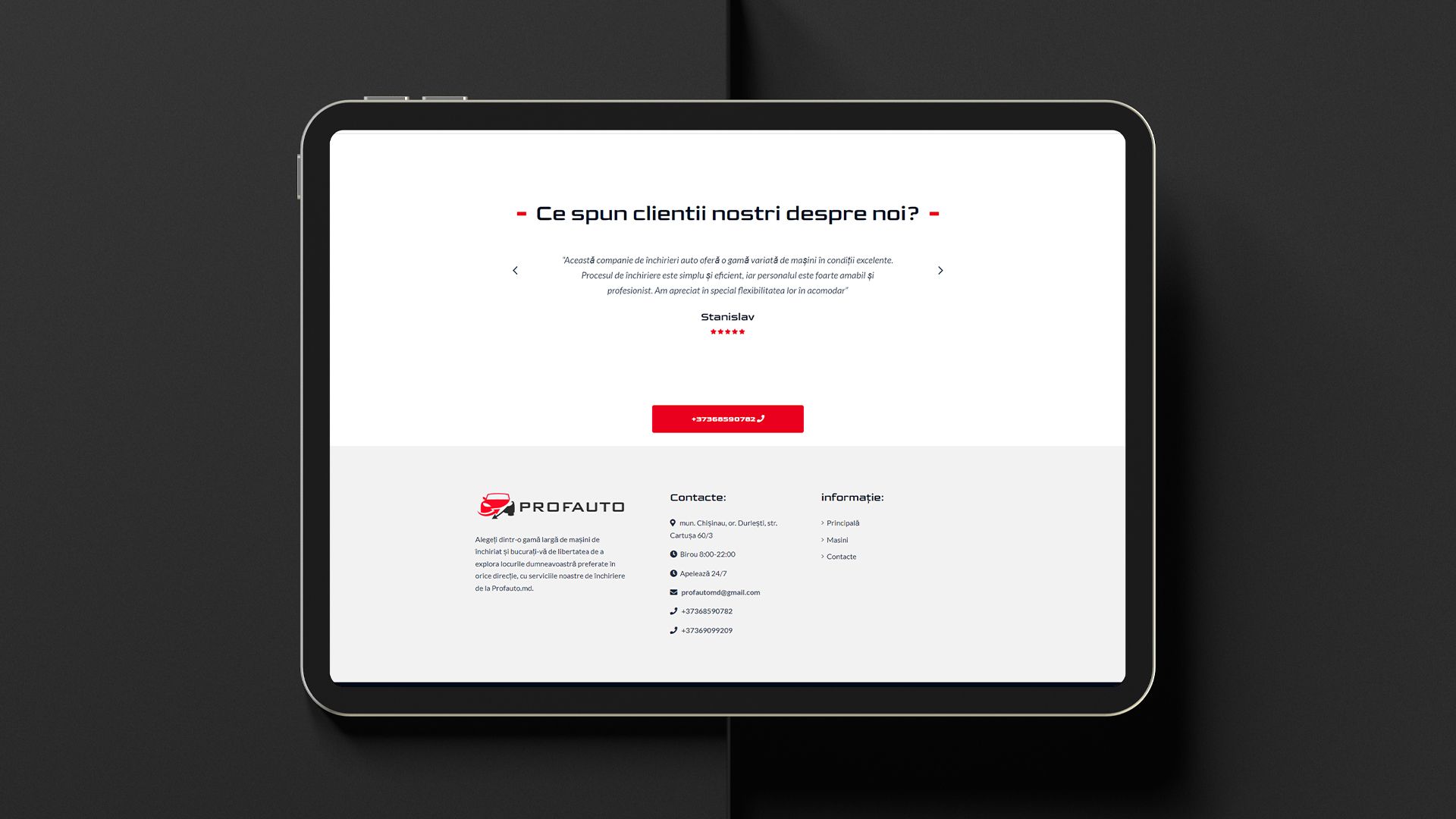 Experiență utilizatorului îmbunătățită: Site-ul ProfAuto.md oferă o experiență plăcută și ușoară utilizatorilor, permițându-le să exploreze ofertele și să facă rezervări în doar câțiva pași simpli. Designul modern, navigarea intuitivă și funcționalitățile avansate au dus la un grad ridicat de satisfacție al clienților.
